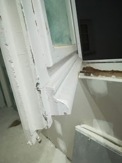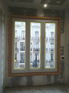Restauración integral ventanales antiguos realizado en Zaragoza, C/ Costa en mayo de 2018 para después pintar en blanco. Puede verse el estado anterior y posterior