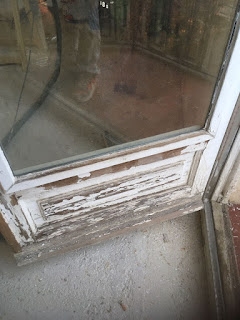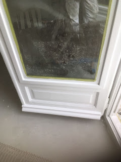 Restauración de carpintería antigua en domicilio de Zaragoza calle Costa, realizada en noviembre 2018, lijado, plastecido y pintado de la misma por dentro y fuera y fabricación de molduras como las que había en origen. Puede verse el estado anterior y el mismo después de la actuación.
